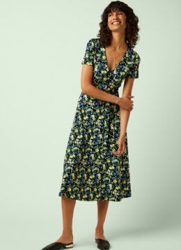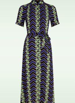 ”How can you not fall in love with this dress?!” Deze midaxi doorknoopjurk is speels maar toch heel vrouwelijk. Uitgevoerd in een heerlijk soepele en luchtige zwarte EcoVero viscose (stretcht niet) met een retro print in groen, blauw en een vleugje wit. Ben jij al verkocht? * Midaxi model * Doorknoopjurk * Puntig kraagje * Korte mouwtjes met vaste omslagjes * Afneembare strikband voor een extra ‘snatched’ taille * It has pockets! * Geen rits * Reikt bij een lengte van 1,70 m tot halverwege de kuit
