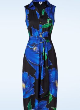 Elena flower midi jurk in zwart en blauw