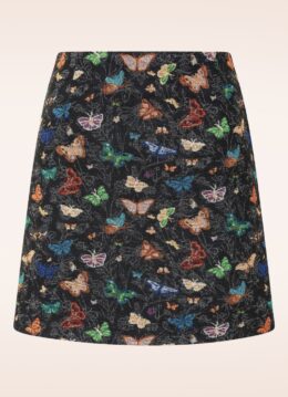 “Printed to play, tailored to slay… this jacquard mini does both.” Dit speelse A-lijn rokje is uitgevoerd in een iets dikkere en stevige jacquard stof (stretcht niet!) voorzien van een vlinder print.    * A-lijn model * Zilverkleurige rits achterzijde * Volledig gevoerd * Valt bij een lengte van 1,70 m boven de knie