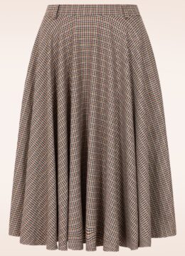 “A classic never goes out of style.” Deze swingrok straalt pure retro charme uit! De flatterende taille en zwierige snit creëren een vrouwelijk silhouet, terwijl het subtiele pied-de-poule patroon in zwart, bordeauxrood en okergeel zorgt voor een speels, maar toch tijdloos effect. Ze is uitgevoerd in een stevige, maar soepel vallende stofmix met een vleugje viscose, waardoor ze heerlijk draagt. En… ze heeft handige steekzakken! * Swing model * Riemlusjes * Voorzien van zakken! * Blinde rits en knoopsluiting aan achterzijde * Kan gecombineerd worden met een van onze petticoats * Valt bij een lengte van 1,70 m over de knie