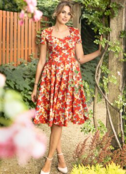 Topvintage exclusive ~ Maddison floral swing jurk in rood en oranje