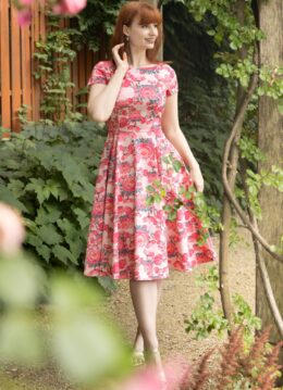”She walked like a secret, dressed like a headline!” Deze flirty A-lijn beauty is ontworpen door onze eigen in-house ontwerpers en is een ode aan tijdloze elegantie, geïnspireerd door de iconische stijl van Ava Gardner en haar ongedwongen charme in de film ‘Barefoot Contessa’ uit 1954. Uitgevoerd in een scarletrode, stevige, high quality stof met een hele lichte stretch waardoor Juliana een genot is om te dragen. “Red, like the Diva she is, impossible to ignore.” * A-lijn * 3/4 mouwtjes * Gevoerde top * Brede, vierkante halslijn * Bra strap holders zodat je bh bandjes niet gaan schuiven * Vaste strikbanden voor een extra ‘snatched’ taille * Blinde rits aan de achterzijde * Gorgeous Julia Fiore (Fiorevanil) is 1,70 m; haar accessoires zijn haar eigen vintage treasures * Let op; de kleur van het product op de video kan afwijken van de daadwerkelijke kleur van het product