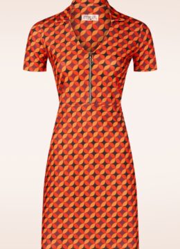 Topvintage exclusive ~ Daisy Geo Retro jurk in oranje en zwart