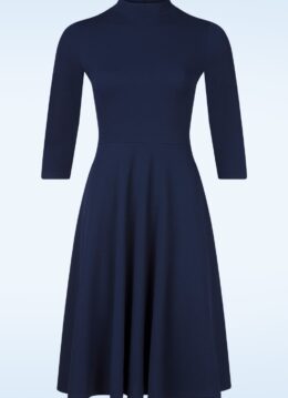 Topvintage exclusive ~ Marina slinky swing jurk in marineblauw