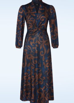 • Aurora Knotted maxi jurk in donkerblauw en bruin