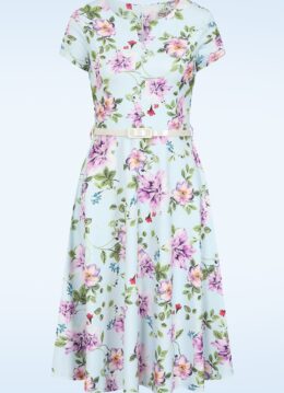Topvintage Exclusive ~ Rosa floral swing jurk in lichtblauw