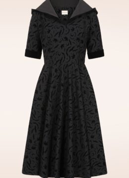 “Serving spells and vintage vibes!” Laat je inner witchy queen stralen in deze prachtige swingjurk — perfect voor de donkere, magische dagen van het seizoen! De vaste capuchon geeft haar die onweerstaanbare spooky-chic uitstraling, terwijl de flatterende swingrok en vrouwelijke pasvorm zorgen voor een elegant silhouet. Ze is uitgevoerd in een stevige, maar soepel vallende stof met een all-over Halloweenprint en een fluweelachtige look & feel. * Swing stijl * Vaste capuchon * Korte mouwtjes met fluwelen omslagjes * Blinde ritssluiting in de zijnaad * Valt bij een lengte van 1,70 m over de knie