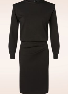 “Comfy enough for coffee, chic enough for cocktails… your essential black dress.” Demi heeft lange mouwen, een loose-fit top, subtiele schoudervullingen en is uitgevoerd in een iets dikkere, maar soepele en stretchy stof met geplooide details in zwart. * Loose-fit top * Hoge, ronde halslijn * Lange mouwen * Schoudervulling * Geplooide details * Geen rits of knopen; aantrekken en ready to go! * Valt bij een lengte van 1,70 m op de knie