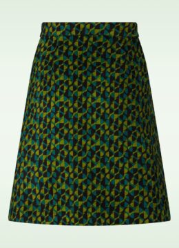 ”Go green, go bold!” Met dit A-lijn rokje geef je je outfit een knipoog naar de jaren ’70. Ze is uitgevoerd in een stevige maar stretchy, subtiele ribfluwelen katoenmix voorzien van een grafische retro print in groen- en blauw tinten. * A-lijn model * Rits- en drukknoopsluiting zijkant * Valt bij een lengte van 1,70 m boven de knie