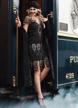 Amelia Peacock Flapper jurk in zwart en blauw