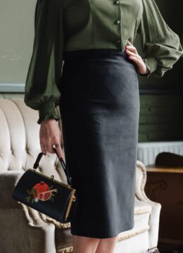 ”Simply chic!” Loreen is een elegant hoog taille model dat onmisbaar is in de kledingkast van iedere vrouw! Deze rok is gemaakt van een flatterende en stretchy, zwarte, bengaline-achtige viscosemix met een subtiele krijtstreep. Ze benadrukt je rondingen perfect, zonder af te tekenen. * Hoog taille model * Blinde rits achterzijde * Split aan de achterzijde * Valt over de knie bij een lengte van 1,70 m