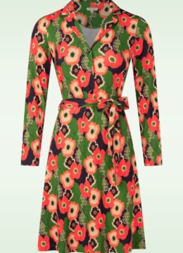 ”Retro blooms, timeless grooves!” Deze jurk is een echte eyecatcher dankzij haar kleurrijke retro bloemenprint in o.a. groen en oranje. Ze heeft een elegante reverskraag, lange mouwen en een speelse A-lijn die vanaf de taille prachtig uitwaaiert. Uitgevoerd in een heerlijk soepele en stretchy EcoVero viscosemix, die niet alleen comfortabel draagt maar ook een duurzame keuze is. * A-lijn  * Revers kraag  * Knoopjes voorzijde  * Afneembaar striklint * Valt bij een lengte van 1,70 m net over de knie
