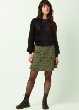 ”Go green or go home!” Op zoek naar hét perfecte rokje? 😉 Of je nu brede heupen hebt of juist niet, dit korte rokje is super flatterend voor je figuur. Ze is uitgevoerd in een soepele en stretchy botanisch groene EcoVero viscosemix, die heerlijk comfortabel draagt. * A-lijn model * Brede band die zowel in de taille als op de heup gedragen kan worden * Geen rits of knopen; aantrekken en ready to go! * Valt bij een lengte van 1,70 m boven de knie * De afgebeelde trui is binnenkort verkrijgbaar in onze shop