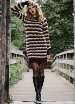 “If confidence had a fabric and a colour, it would be this knitted amethyst masterpiece!” Deze prachtige midi-jurk heeft een aansluitende top met 3/4 mouwen en een midi rok met ‘plooien’. Uitgevoerd in een superzachte, fijngebreide en stretchy viscosemix met een vleugje wol in amethist paars die heerlijk draagt… perfect voor het nieuwe seizoen!   * Midi jurk * Ronde halslijn  * 3/4 mouwtjes * Geen rits of knopen; aantrekken en ready to go! * Valt bij een lengte van 1,70 m tot halverwege de kuit