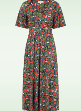 “Retro romance, wrapped to perfection.” Abigail Blend heeft een prachtige V-halslijn met vaste overslag en flatterende plooitjes, speelse kapmouwtjes en een afneembaar, bijpassend striklint om je taille mooi te accentueren. Ze is uitgevoerd in een zachte, soepele en stretchy biologische katoenmix met een kleurrijke retroprint die meteen in het oog springt. * A-lijn * V-hals met vaste overslag * Plooitjes * Korte kapmouwen * Afneembare matching striklintje * Géén ritssluiting of knopen * Valt over de knie bij een lengte van 1,70 m