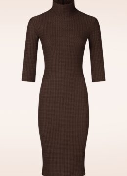 “Simplicity is the ultimate sophistication.” Stijlvol, comfortabel en met een vleugje duurzaamheid — deze jurk is een echte must-have! Ze heeft een klein opstaand kraagje, 3/4-mouwen en is uitgevoerd in een stretchy structuurstof in een diepe chocoladebruine tint. Gemaakt van een gerecyclede stofmix en perfect voor elke gelegenheid. * Aansluitend model * Klein opstaand kraagje * 3/4 mouwen * Geen rits of knopen; aantrekken en ready to go! * Valt bij een lengte van 1,70 m net over de knie * Exclusief verkrijgbaar bij Topvintage