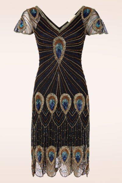 Home > Decade > 20s > Amelia Peacock Flapper jurk in zwart en blauw