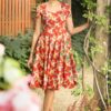 Topvintage exclusive ~ Joliena Autumn Floral swing jurk in roestoranje