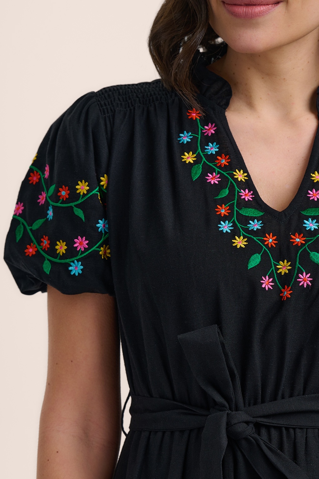 Revers Linen midi jurk in terracotta