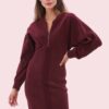 Jessy Bomber Style gebreide velours jurk in bordeauxrood