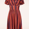 Topvintage exclusive ~ Sadie Stripes swing jurk in paars en wijnrood