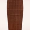 Alba Checkered midi rok in tegelbruin
