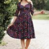 The Bombshell Roses pencil jurk in zwart