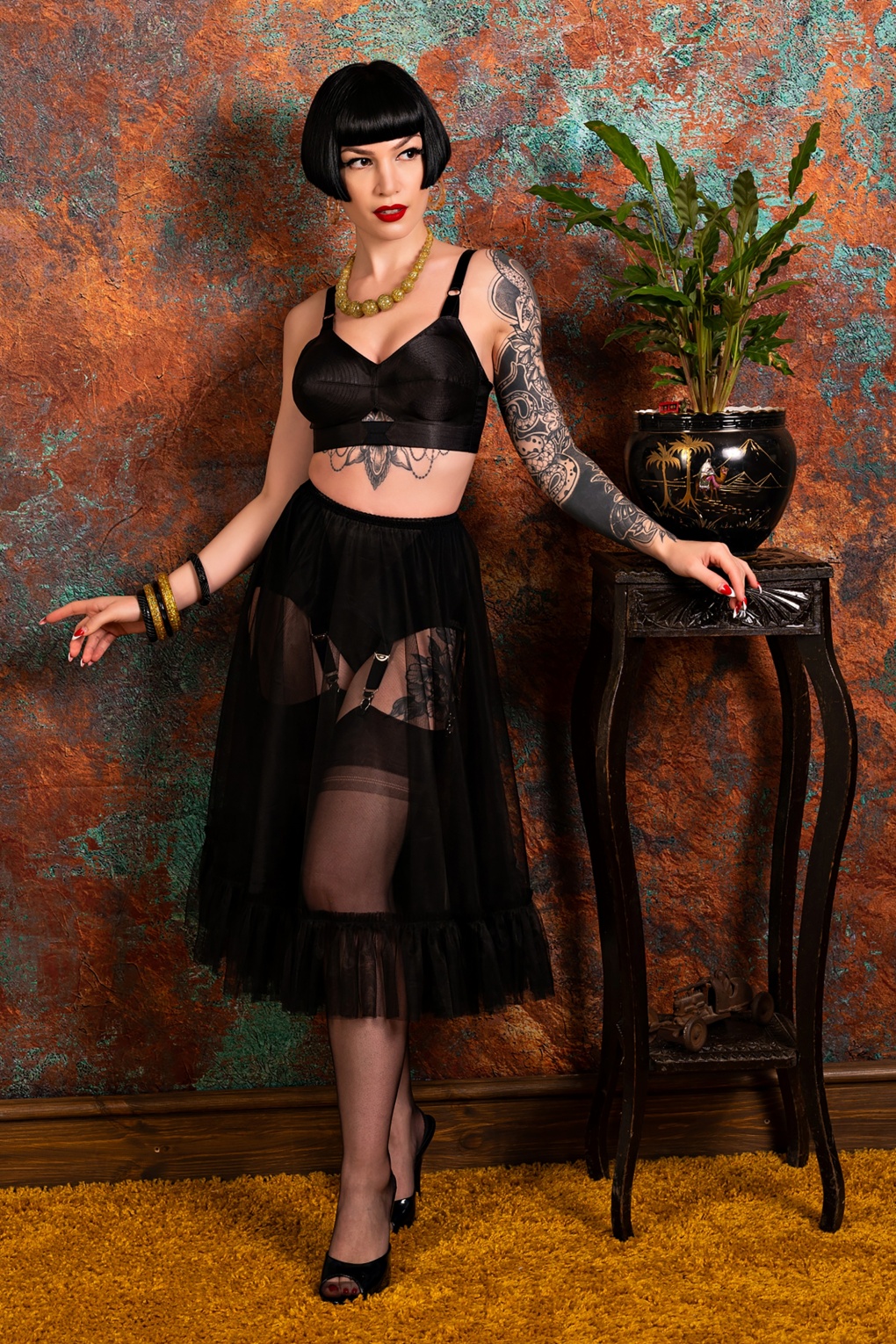 ”Swish and swirl!” Deze petticoat heeft een laag en is uitgevoerd in zwart doorzichtig mesh met een franje aan de onderzijde en een elastische tailleband.  * Geschikt voor al onze swing jurken en rokken * Elastische tailleband * De zachte nylon stof veroorzaakt geen beschadigingen aan je kousen * Do you dare? Draag deze petticoat onder een lange blazerjurk of juist als statement piece voor een gewaagde, edgy look 😉 * Let op; de kleur van het product op video kan afwijken van de daadwerkelijke kleur van het product