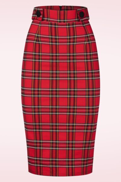 Home > Decade > 50s > Teagan tartan pencil rok in rood