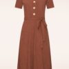 • Revers Linen midi jurk in terracotta € 149,95