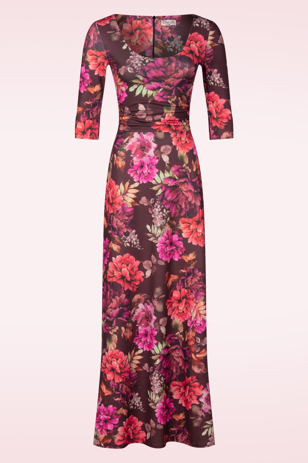 Home > Decade > 40s > Topvintage exclusive ~ Davina floral maxi jurk in burgundy