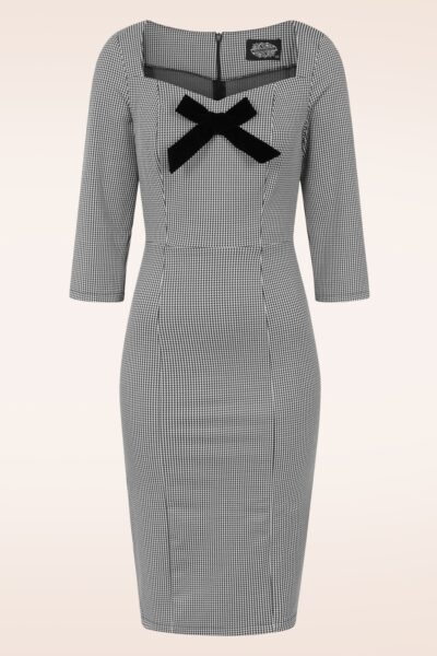 Home > Decade > 50s > Topvintage Exclusive – Gillian Houndstooth pencil jurk in zwart en wit