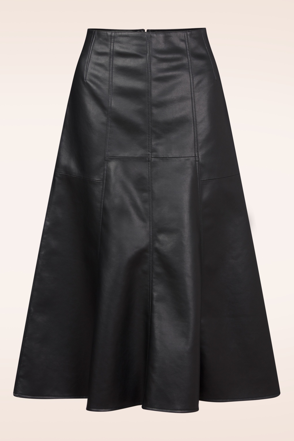 Topvintage exclusive ~ Lara Faux Leather Midi rok in zwart