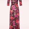 • Topvintage exclusive ~ Davina floral maxi jurk in burgundy € 79,95