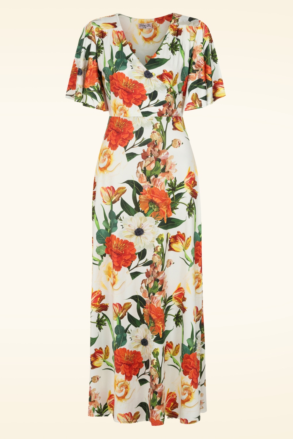 Home > Decade > 70s > Topvintage exclusive ~ Scarlet Floral Slinky maxi jurk in gebroken wit
