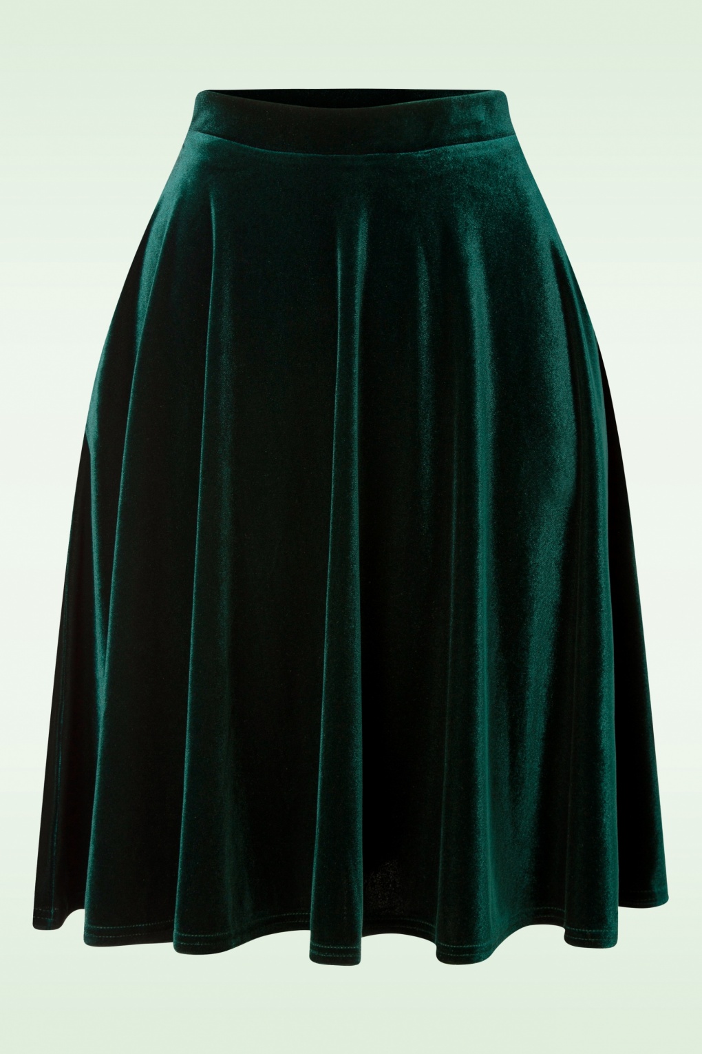 Feestdagen of gewoon een dagje full glamour? Deze 50s Sheila Swing Rok in Groen Fluweel is jouw sidekick! Deze beauty wordt hoog in de taille gedragen en waaiert prachtig uit waardoor je een super vrouwelijk zandloper figuur krijgt, oh la la. Uitgevoerd in een soepel vallende, stretchy, donkergroene fluwelen stof die elegant glanst zodra er licht op valt. Niets is zo charmant als een vrouw in glanzend fluweel… * Full swing * Zijwaartse steekzakken * Geen rits of knopen * Elastische taille * Valt op de knie bij een lengte van 1,70 m * Exclusief bij Topvintage verkrijgbaar
